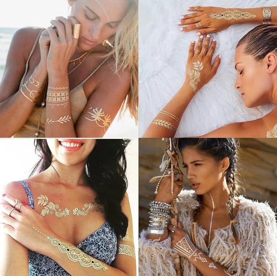 Metallic Temporary Tattoos Gold Temporary Tattoo Jewellery Temporary Tattoo Paper Flash Fake Waterproof Tattoo Transfer Stickers For Women Girls Body Art Y3jswst 3 Amazon Co Uk Beauty